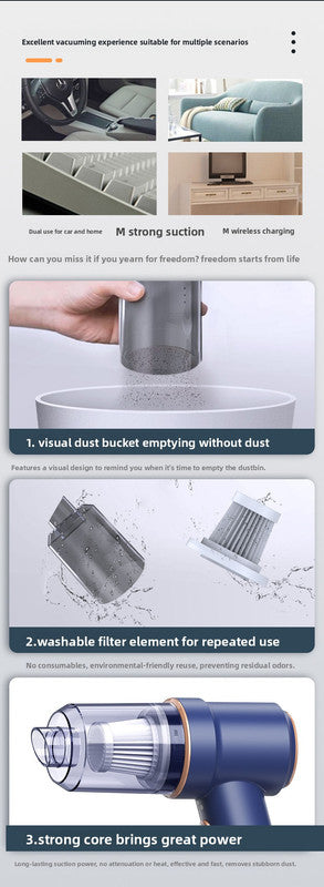 Constructed from durable ABS plastic in a sophisticated blue finish, this vacuum is built to last. The transparent dust cup allows you to see when it is time to empty the bin, and the "twist and dump" mechanism ensures your hands stay clean. Compact enough to store in your car's glove box or door pocket, it is always ready for quick clean-ups, making it an essential tool for maintaining a tidy environment in your daily life.