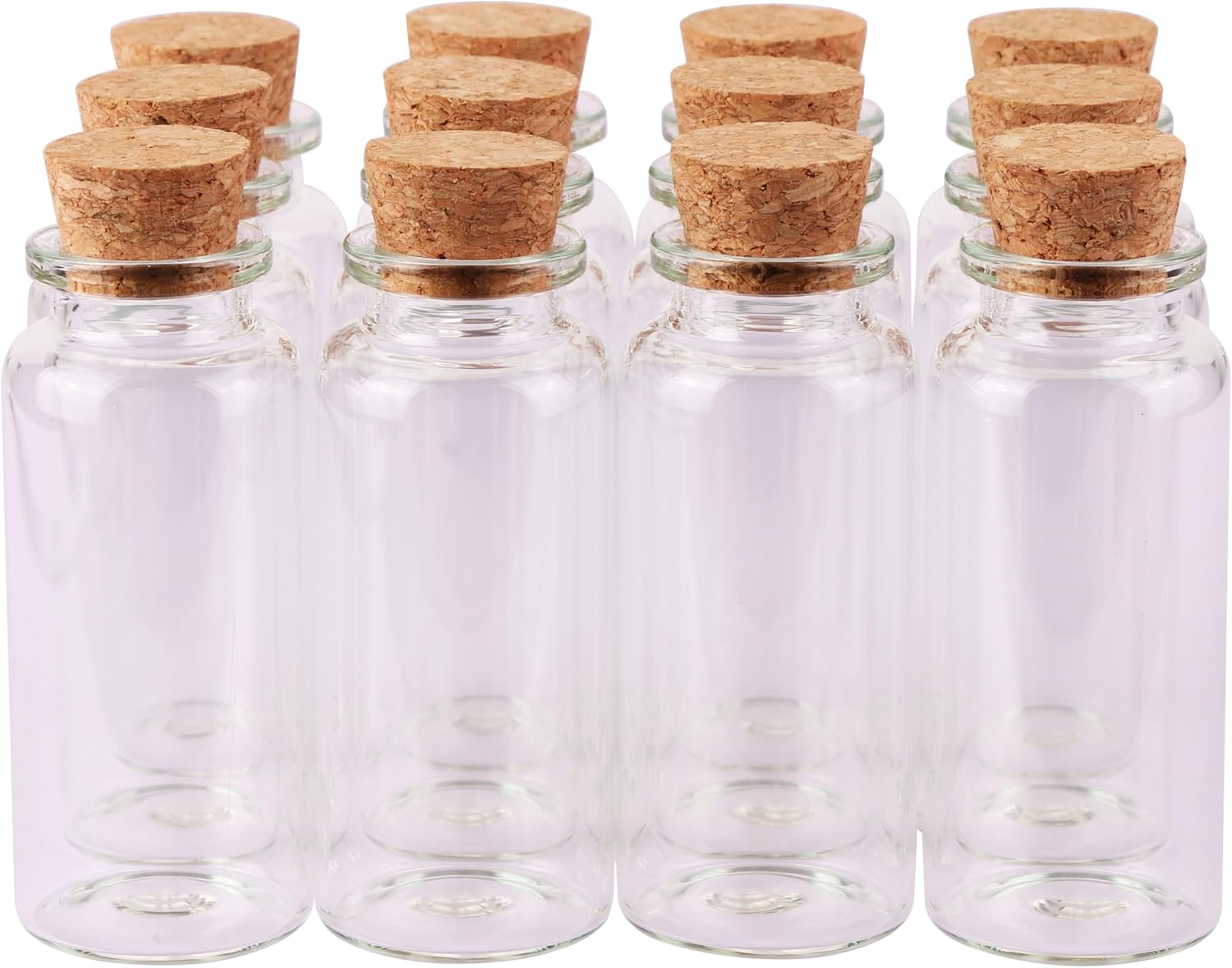 30ml Cork Stoppers Glass Bottles, Small Jars for Candy Wishing Bottle Wedding Favors (12 Sets)