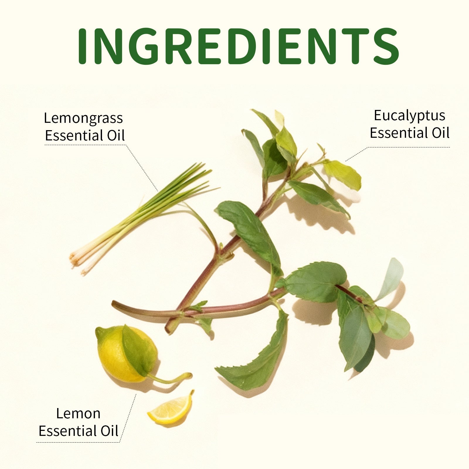 Natural Ingredients: Lemongrass, lemon, and eucalyptus essential oils