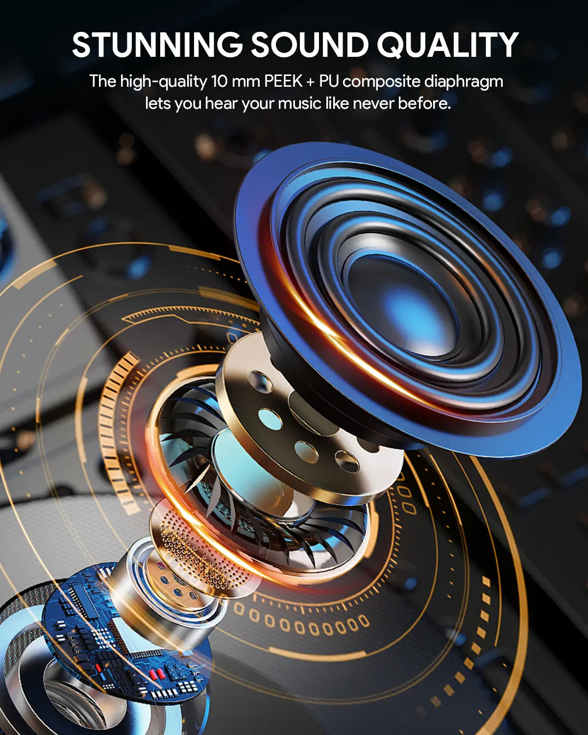 - High-Fidelity Sound: 10mm dynamic drivers deliver rich, detailed sound with deep bass and crisp highs for an immersive listening experience.