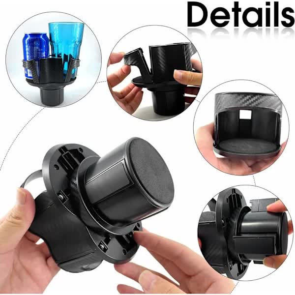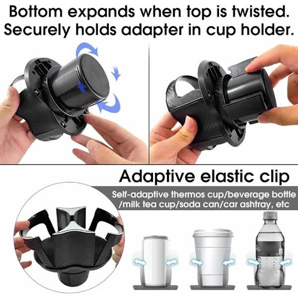 Space-Saving Design: 2-in-1 Multifunctional Cup Holder, Double Parking Cup Holder. This holder can hold two drinks at a time, small size and large capacity. You can easily install it without any additional tools, an ideal storage box for a space-saving car. Fits Most Cups: The elastic cup opening automatically opens when you place a cup in the car cup holder and closes again when you remove the cup. Tip: It is recommended not to place cups or water bottles too high. Extendable Base: Easy Installation: The base of the cup holder is extendable from 6.4 to 10 cm. Each cup holder comes with free anti-slip and shock-resistant sponge pads, so it fits most car cup holders. In addition, it can be moved from left to right. The position can be adjusted according to the available space. Anti-Slip Bottom: The bottom of the cup holder is equipped with a non-slip foam pad. If there is a gap between the installation position and the bottom of the holder, you should use a foam pad to fill it. This not only reduces vibration but also stabilizes the holder. Wide compatibility: This 2-in-1 car cup holder saves you countless times searching between the seat and the center console for your cell phone, credit cards, keys, pens, wallet, etc. for all cup holders. Works perfectly for car cup holders, even golf carts, motorcycles, boats, trucks, and RVs.